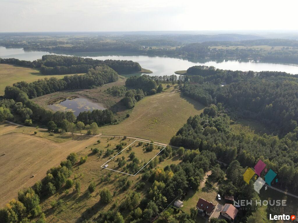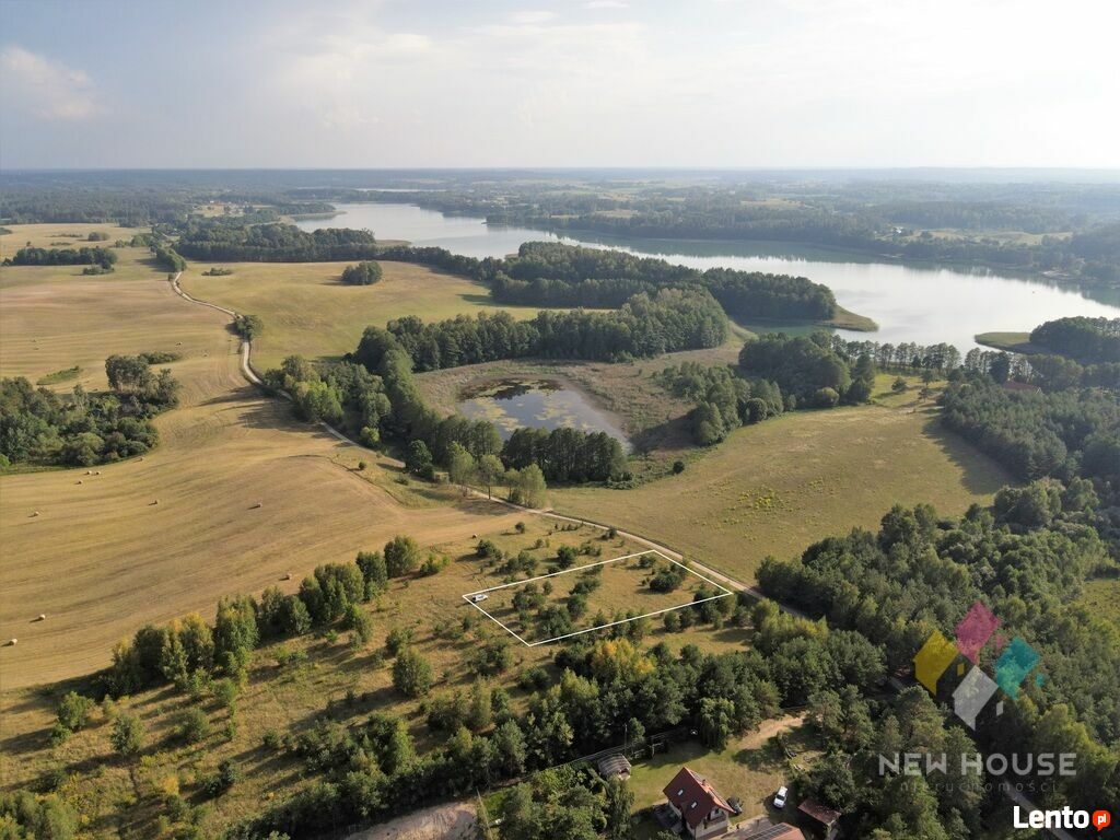 Działka na obrzeżach mazurskiej wsi - Śniadowa, na wzniesieniu, zprzepięknym widokiem na zatokę jeziora Juksty, las i łąki. Miejsce